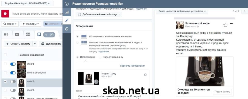 Ніша – продаж кави та кавових машин по всій Україні. Потрібно було залучити лідів для продажу їм кави і кавових машин. Весь трафік через Facebook.
