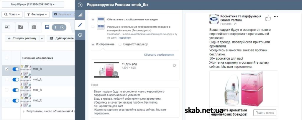 Ніша – продаж парфумерії по всій Україні. Потрібно залучити лідів для продажу їм парфумерії або пробників після чого користувач потрапляв в базу де йому робили «допродаж». Весь трафік через Facebook.